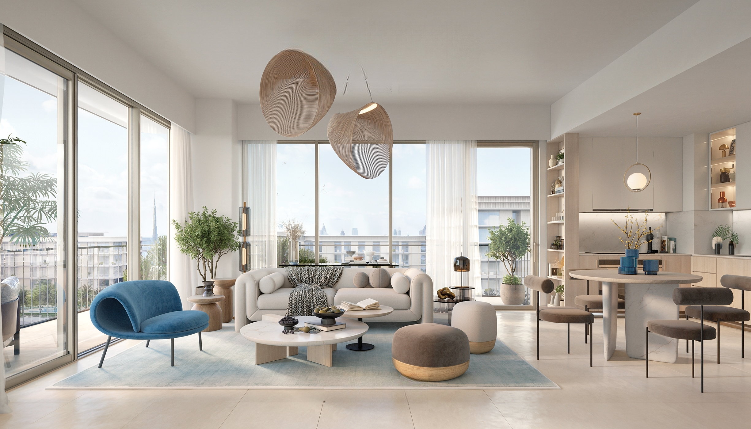 You can purchase 1-3 bedroom apartments and 3-bedroom duplexes in Bayline.