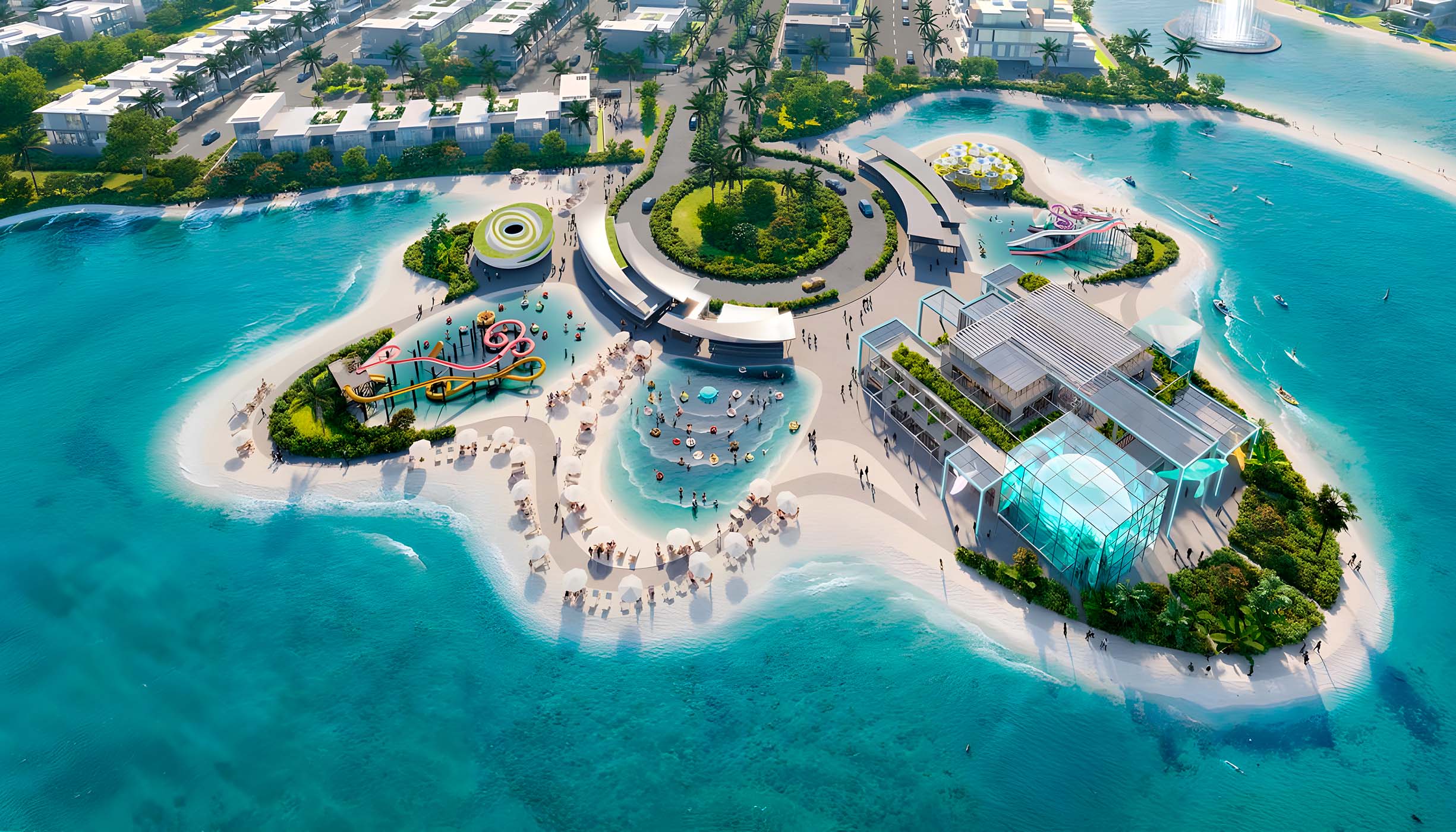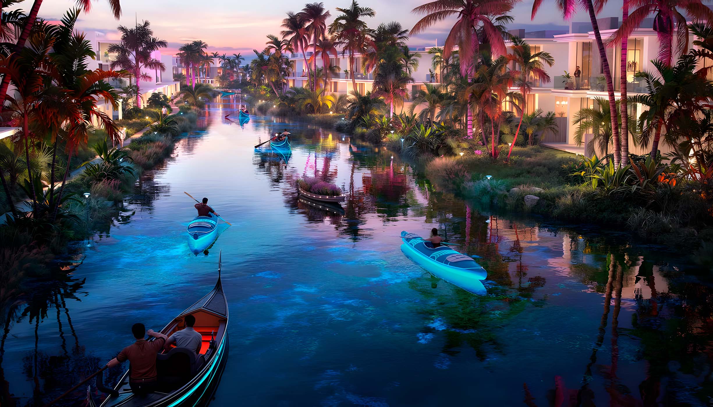 Residents will be able to enjoy resort-style amenities, including a water park, fruit market, iguana park, jungle river, hot spring spa, zipline, mini-golf island, lagoon, aqua dome, water platforms and yoga floating decks, tortoise garden, parrot park, fitness parks, hammocks over water, wedding venue, private boat parties, kayaking and paddleboarding, and much more.