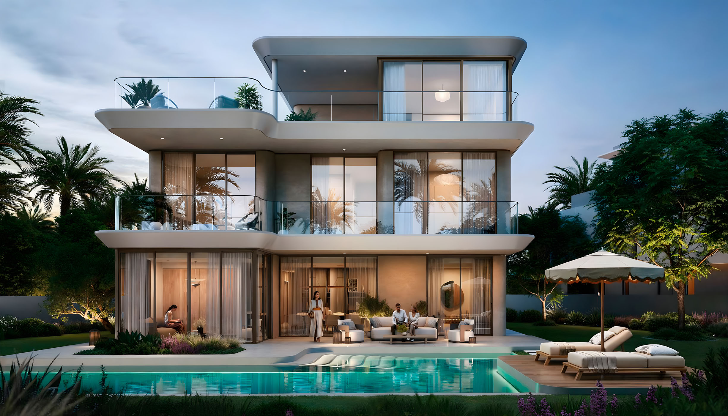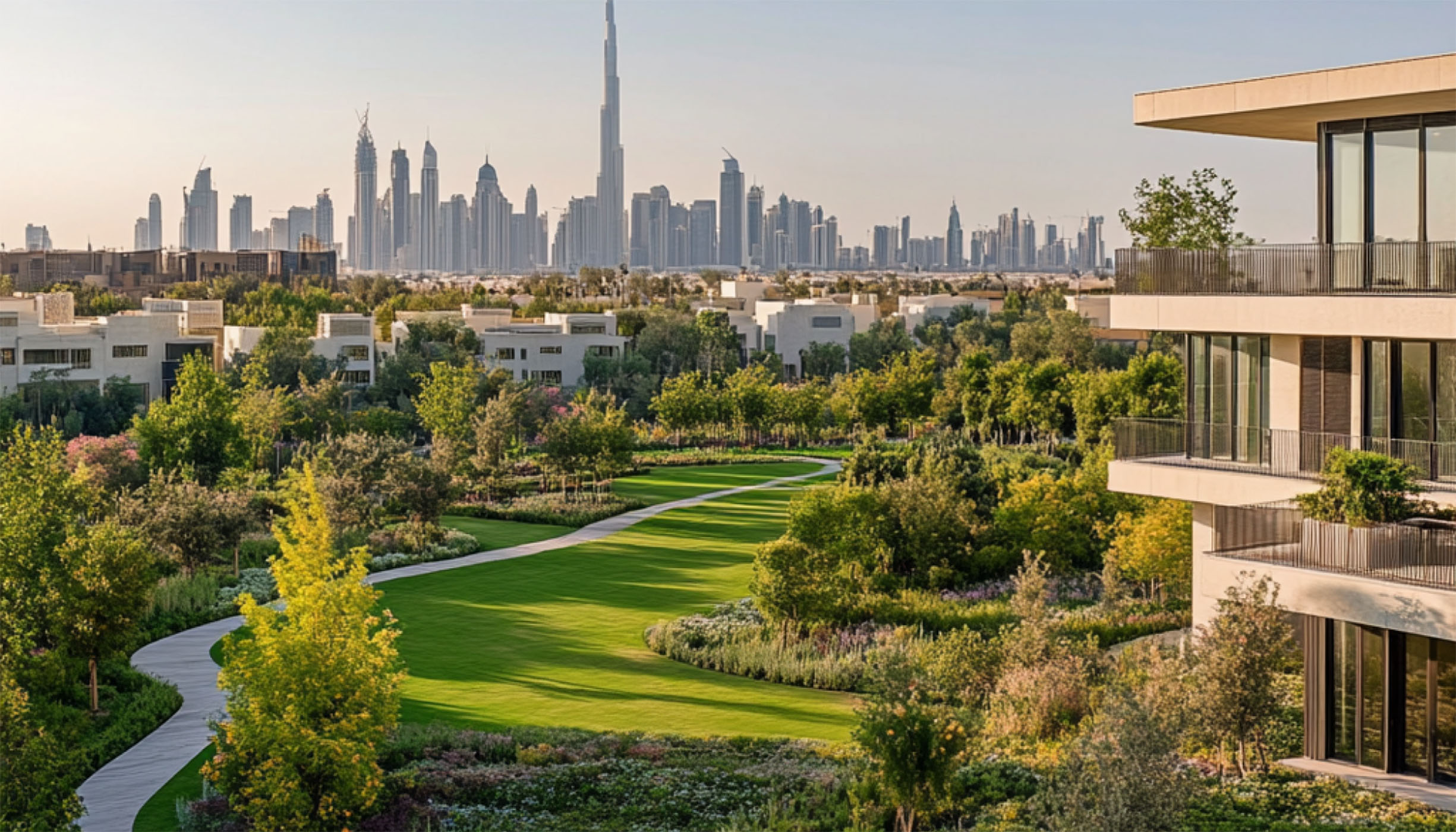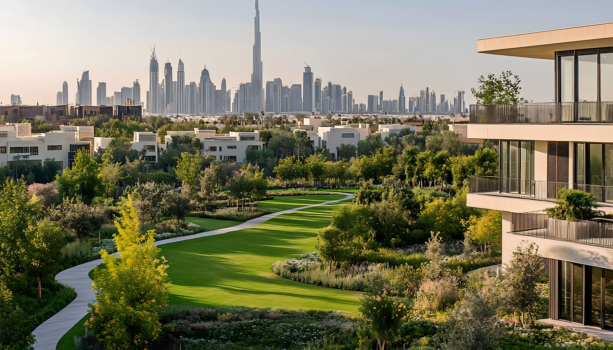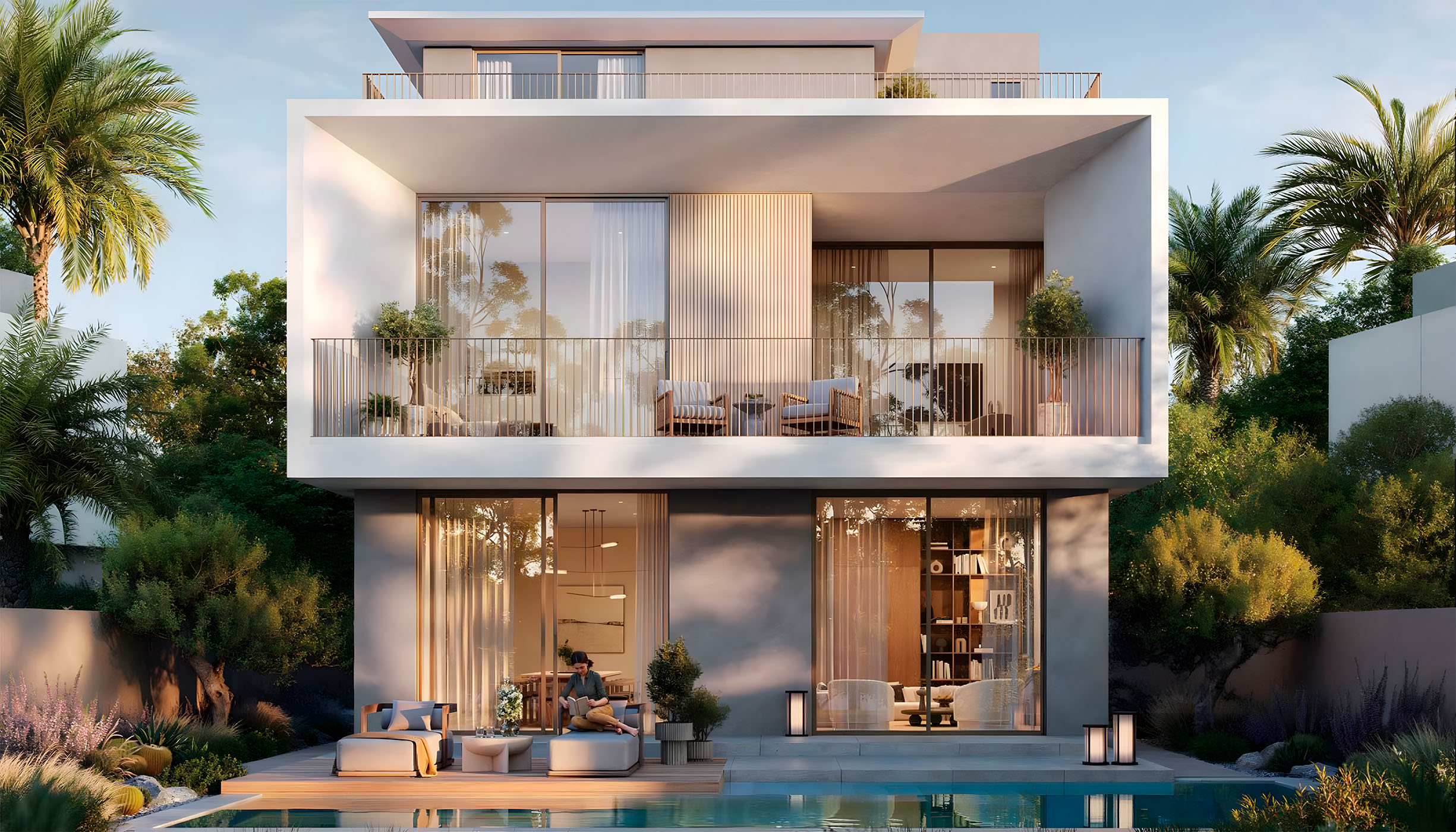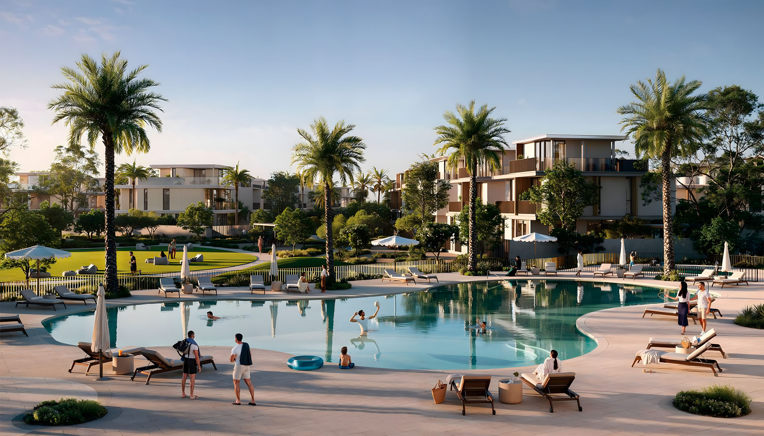 This community offers a range of amenities, including kids’ play areas, open lawns, a pet park, fitness and sports facilities, and a yoga platform. Residents can also enjoy farming allotments, a picnic area, a Ghaf Forest, and a tranquil desert majlis for relaxation and connection.