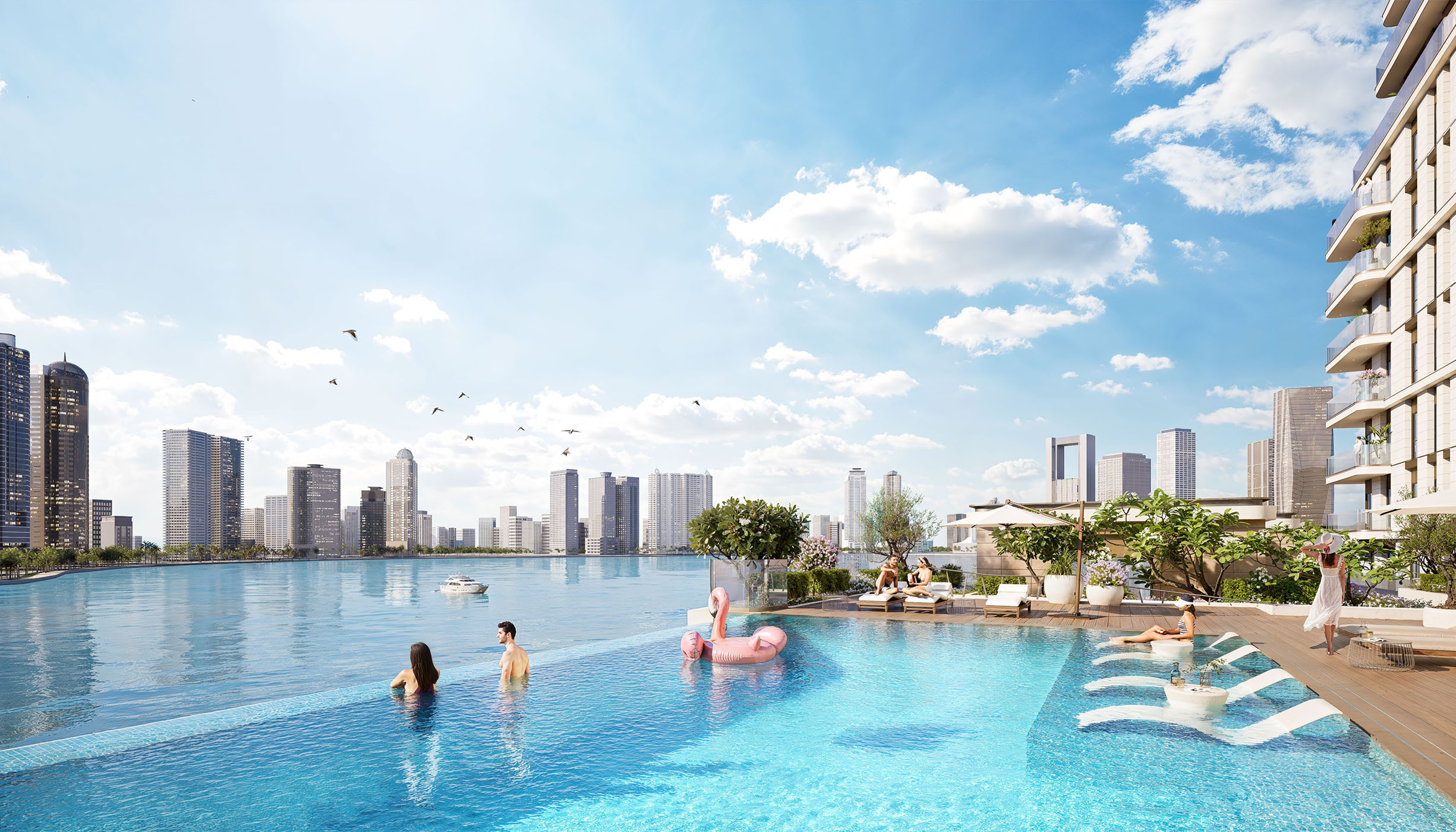 Residents will be able to take advantage of multiple facilities onsite, which include, but are not limited to, designated parking spaces, swimming pools, a gym, and a playground.