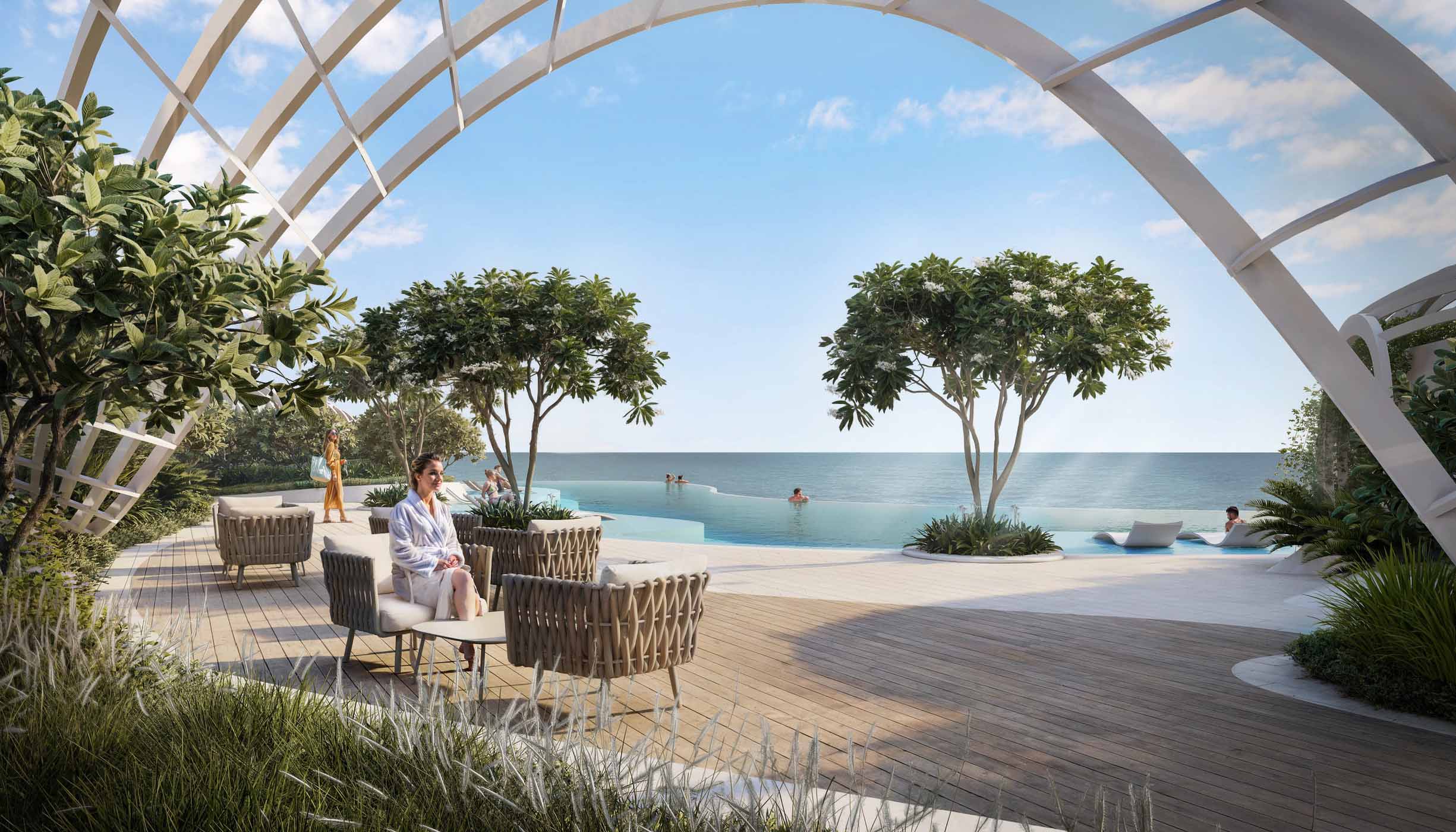 There are fully-furnished 1-3 bedroom apartments, 5-bedroom penthouses with maid’s rooms, duplexes and just 7 exclusive chalets on offer. Owners of penthouses and chalets will have private swimming pools at their disposal.